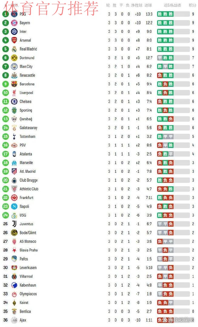 当欧冠小组赛战至第三轮,原本被视作“常规剧情”的积分榜,突然被一连串出人意料的赛果彻底改写。有人豪取三连胜昂首向出线迈进,有人却在一片质疑声中遭遇三连败深陷泥潭。5支球队保持全胜与两大前冠军连